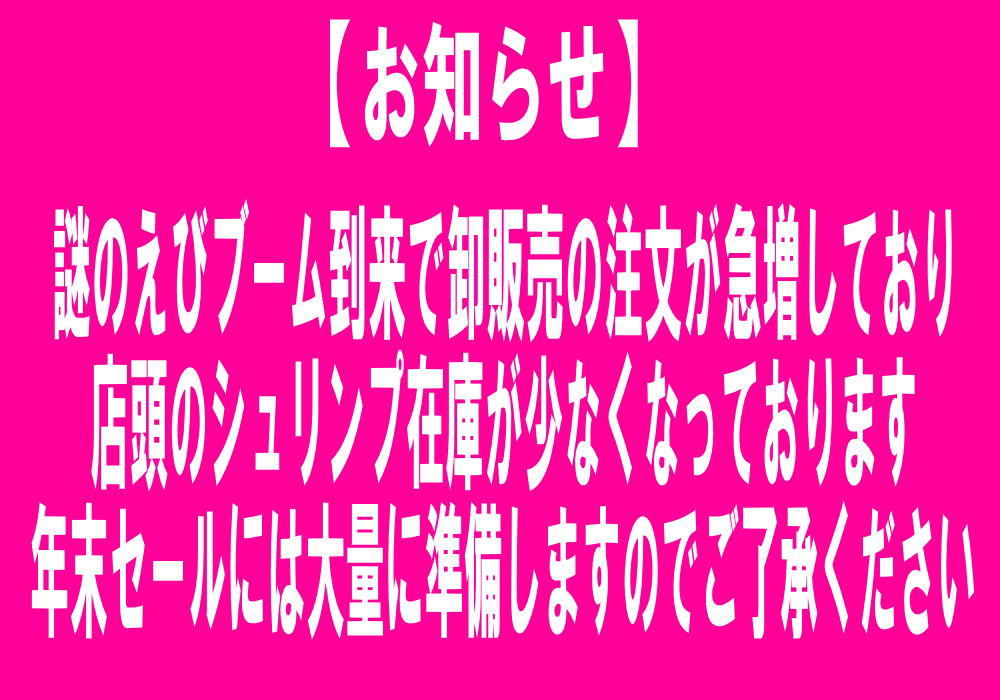 ![]() ![]() 12月は7回も開いてます! ![]() クリスマスイベントに来れなくても500円券で使えます! ![]() スタンプラリー 12月は2回ゲットデキマス! ![]() ![]() ![]() 今年は11月セールからXmas抽選券配布開始!スタンプラリーも継続中! ストック少な目に付き在庫分は超特価にて大放出となります ![]() 直前RTはこちら ![]() スタンプ貯めて年末のお楽しみゲット! ![]() 入荷シュリンプはタイミングが合えばこちらのセール情報へもアップ予定となります ![]() ![]() ![]() ![]() ![]() ![]() ![]() ![]() ![]() ![]() もうあかん 辞めます アグラオネマ ![]() ご自宅のリビングにぴったり!2メーター60センチの大型水槽も売ってます 水量1500リッター ![]() ![]() スタンプ貯めて年末のお楽しみゲット! ![]() 今回は直前入荷の為画像はありません 店頭にてご確認ください! RTからの店頭引取がナウい! ![]() *送料が表示されても店頭引取の場合は無料となります ![]() ![]() スタンプ貯めて年末のお楽しみゲット! ![]() シーズンイン間近!そろそろいろいろご準備を! ![]() 久しぶりのビッグRT!!! ![]() こちらは東京でイベント! ![]() 恒例の短期間チャンスの可能性大! ![]() 最後に会いに来てね ![]() ![]() 直前通販イベントからの店頭引取もお勧め! ![]() ブランドレッドビー少な目・フィッシュボーン・ファンシータイガーハイグレード多めとなります! まだまだアツいので夏割スペシャルプライスでご来店お待ちしております! ![]() 全水槽夏割MAXにて思い切ってコスパ放出となります!ご期待ください! やっと入荷しました 「他のネットが使えなくなるネット」 ![]() BMG・RFT・RGなどハイグレードも大量直前入荷! MATERIALBLUE種親も少量入荷となります! ![]() ![]() ![]() ネットで買って店頭引取OK! ![]() ![]() ![]() 人気のBMG・MATERIALBLUE他イベント直前に約5万匹の大量入荷予定! ハイグレード一番抜きチャンスイベントとなります メタカラ全種一律価格!店頭発表となります ![]() ハイグレードメダカ 1匹100円! 小型水槽100円~300円(取り置きなし) ![]() ![]() 期待度4.5評価のやるMAX!SPECIALイベントとなります! ![]() ![]() BMG セール直前400匹入荷予定! ![]() CGS 100匹以上ストックあります! ![]() GBN フルボディ店頭超特価! ![]() ECOPIA RFTハイグレードも! ![]() ここから狙って!ハイグレード続々 ![]() 店頭引取りチャンス! ![]() クーポンどんどん発行中! ![]() ![]() イベント直前に入荷情報・セール情報などを告知する場合があります ![]() が,今回は輸入日程調整が上手くいかずイベント時のストック数は 少な目となりますのでコスパ中心・量重視のセール予定となります ![]() ![]() 過去のセールはこちら |