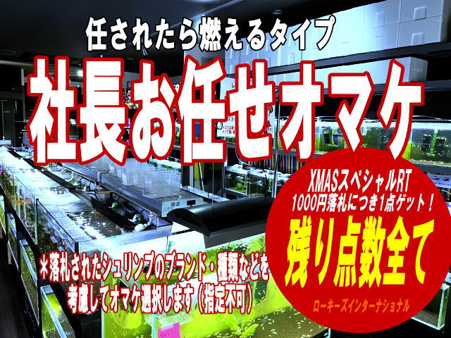 ![]() ![]() 12月は7回も開いてます! ![]() RTからの店頭引取り社長お任せオマケがナウい! ![]() ![]() クリスマスイベントに来れなくても500円券で使えます! ![]() スタンプラリー 12月は2回ゲットデキマス! ![]() ![]() ![]() 今年は11月セールからXmas抽選券配布開始!スタンプラリーも継続中! ストック少な目に付き在庫分は超特価にて大放出となります ![]() 直前RTはこちら ![]() スタンプ貯めて年末のお楽しみゲット! ![]() 入荷シュリンプはタイミングが合えばこちらのセール情報へもアップ予定となります ![]() ![]() ![]() ![]() ![]() ![]() ![]() ![]() ![]() ![]() もうあかん 辞めます アグラオネマ ![]() ご自宅のリビングにぴったり!2メーター60センチの大型水槽も売ってます 水量1500リッター ![]() ![]() スタンプ貯めて年末のお楽しみゲット! ![]() 今回は直前入荷の為画像はありません 店頭にてご確認ください! RTからの店頭引取がナウい! ![]() *送料が表示されても店頭引取の場合は無料となります ![]() ![]() スタンプ貯めて年末のお楽しみゲット! ![]() シーズンイン間近!そろそろいろいろご準備を! ![]() 久しぶりのビッグRT!!! ![]() こちらは東京でイベント! ![]() 恒例の短期間チャンスの可能性大! ![]() 最後に会いに来てね ![]() ![]() 直前通販イベントからの店頭引取もお勧め! ![]() ブランドレッドビー少な目・フィッシュボーン・ファンシータイガーハイグレード多めとなります! まだまだアツいので夏割スペシャルプライスでご来店お待ちしております! ![]() 全水槽夏割MAXにて思い切ってコスパ放出となります!ご期待ください! やっと入荷しました 「他のネットが使えなくなるネット」 ![]() BMG・RFT・RGなどハイグレードも大量直前入荷! MATERIALBLUE種親も少量入荷となります! ![]() ![]() ![]() ネットで買って店頭引取OK! ![]() ![]() ![]() 人気のBMG・MATERIALBLUE他イベント直前に約5万匹の大量入荷予定! ハイグレード一番抜きチャンスイベントとなります メタカラ全種一律価格!店頭発表となります ![]() ハイグレードメダカ 1匹100円! 小型水槽100円~300円(取り置きなし) ![]() ![]() 期待度4.5評価のやるMAX!SPECIALイベントとなります! ![]() ![]() BMG セール直前400匹入荷予定! ![]() CGS 100匹以上ストックあります! ![]() GBN フルボディ店頭超特価! ![]() ECOPIA RFTハイグレードも! ![]() ここから狙って!ハイグレード続々 ![]() 店頭引取りチャンス! ![]() クーポンどんどん発行中! ![]() ![]() イベント直前に入荷情報・セール情報などを告知する場合があります ![]() が,今回は輸入日程調整が上手くいかずイベント時のストック数は 少な目となりますのでコスパ中心・量重視のセール予定となります ![]() ![]() 過去のセールはこちら |