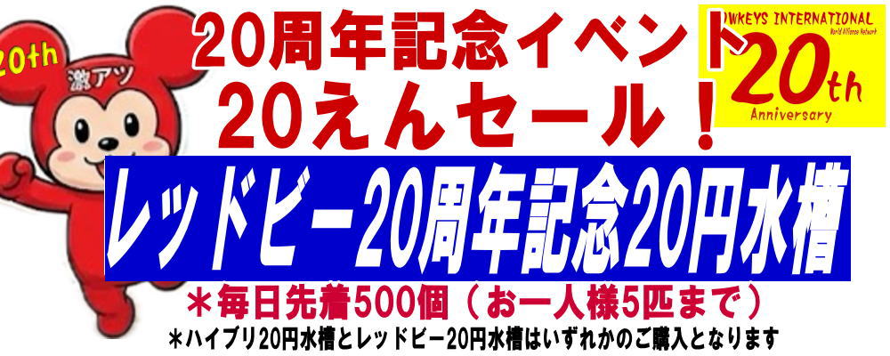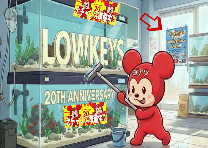 ![]() ![]() 20周年記念後初の大量入荷でストック個体はほとんど変わっております!直前5万匹入荷確定! *ブランドレッドビーは少な目です(ウルトラレッドは多数あり) ![]() 直前1週間入荷数 現在50688匹! まだまだ来ます! ![]() ![]() ![]() ![]() ![]() LOWKEYS HISTORY 2006年2月10日 シュリンプ水槽7本でオープンしました ![]() ![]() 2010年9月10日 ローキーズインターナショナル大連オープン (2010年9月7日尖閣諸島中国船衝突事件発生) ![]() 中国人も色々手伝ってくれました ![]() 2011年6月24日 ローキーズインターナショナル(東京)オープン ![]() ![]() 2015年8月20日 移転場所を発見 その後195日目に ![]() 2016年3月5日 ローキーズインターナショナルオープン ![]() ![]() 2018年3月 タイゴースト取り扱いを始める ![]() ![]() 2018年8月5日 台風にやられる ![]() ![]() 2019年頃 シュリンプ年間取扱高が100万匹を超える ![]() ![]() 2020年3月1日 アクアリウムイベント主催 開催2週間前に中止判断 ![]() 2025年9月5日 アグラオネマ販売開始 2025年10月8日 販売終了 ![]() 2026年2月7日 20周年記念イベント開催 公式キャラクターゲキアツ君登場! ![]() 番外編 ローキーズオープンの2006年から飼育中 ![]() 過背金龍としては最大級のサイズまで成長(64センチ) ![]() おかげ様で20周年!20円あったらローキーズへ行こう! 20円セール第一弾! ![]() 20円セール第二弾! ![]() ![]() 20円セール第三弾! ![]() ![]() まだまだお宝投入します! 早く来たら凄いのいるかも! ![]() 20円セール第4弾! ![]() 20円セール第5弾! ![]() 20円セール第6弾! ![]() 20円セール第7弾! ![]() ナント!全部ウルトラレッドです!急いでね! ![]() 20円セール第8弾! 当たり確率2.78%! ![]() ![]() ![]() ![]() ![]() ![]() ![]() ![]() ![]() ![]() ![]() ![]() あるある涼風シュリンプも! ![]() あるあるシュリンプMASA 80匹入荷! ![]() あるあるY's Bee 239匹入荷! ![]() ![]() Y's Beeお買上げでナノソル30mlボトルプレゼント! ![]() レッドビーは他にもRED STAR SHRIMP/三好池のトシ/ウルトラレッド/静華蝦/710エビなどなど RTからの店頭引取が今回はかなりナウい! ![]() 通販特別セットも続々! ![]() ![]() 訳あってネガポジくん ![]() ![]() ![]() ![]() 訳あってネガポジくん キテネ ![]() 駐車場情報 現在フラップレスタイプに改装中です ローキーズ専用駐車場ですので どこに停めても大丈夫です(無料) ![]() 過去のセールはこちら |