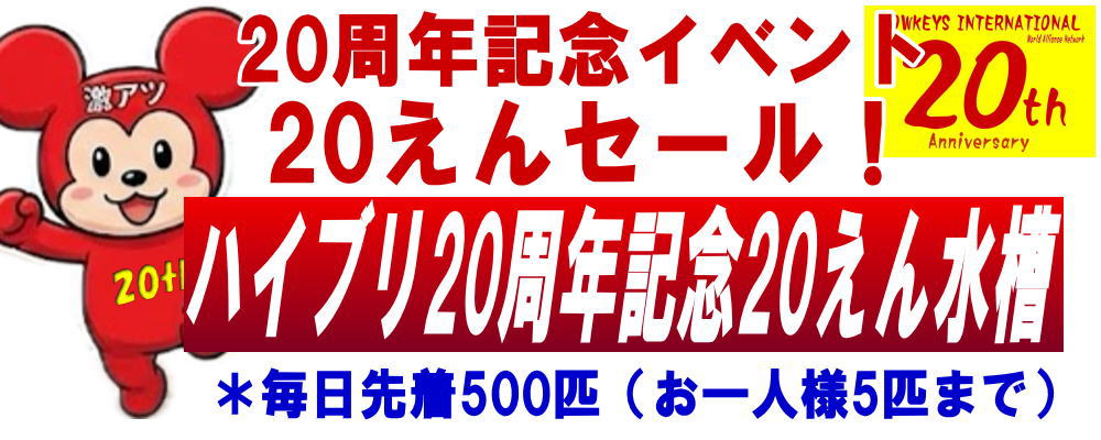 ![]() ![]() 20周年記念後初の大量入荷でストック個体はほとんど変わっております!直前5万匹入荷確定! *ブランドレッドビーは少な目です(ウルトラレッドは多数あり) ![]() 直前1週間入荷数 現在50688匹! まだまだ来ます! ![]() ![]() ![]() ![]() ![]() LOWKEYS HISTORY 2006年2月10日 シュリンプ水槽7本でオープンしました ![]() ![]() 2010年9月10日 ローキーズインターナショナル大連オープン (2010年9月7日尖閣諸島中国船衝突事件発生) ![]() 中国人も色々手伝ってくれました ![]() 2011年6月24日 ローキーズインターナショナル(東京)オープン ![]() ![]() 2015年8月20日 移転場所を発見 その後195日目に ![]() 2016年3月5日 ローキーズインターナショナルオープン ![]() ![]() 2018年3月 タイゴースト取り扱いを始める ![]() ![]() 2018年8月5日 台風にやられる ![]() ![]() 2019年頃 シュリンプ年間取扱高が100万匹を超える ![]() ![]() 2020年3月1日 アクアリウムイベント主催 開催2週間前に中止判断 ![]() 2025年9月5日 アグラオネマ販売開始 2025年10月8日 販売終了 ![]() 2026年2月7日 20周年記念イベント開催 公式キャラクターゲキアツ君登場! ![]() 番外編 ローキーズオープンの2006年から飼育中 ![]() 過背金龍としては最大級のサイズまで成長(64センチ) ![]() おかげ様で20周年!20円あったらローキーズへ行こう! 20円セール第一弾! ![]() 20円セール第二弾! ![]() ![]() 20円セール第三弾! ![]() ![]() まだまだお宝投入します! 早く来たら凄いのいるかも! ![]() 20円セール第4弾! ![]() 20円セール第5弾! ![]() 20円セール第6弾! ![]() 20円セール第7弾! ![]() ナント!全部ウルトラレッドです!急いでね! ![]() 20円セール第8弾! 当たり確率2.78%! ![]() ![]() ![]() ![]() ![]() ![]() ![]() ![]() ![]() ![]() ![]() ![]() あるある涼風シュリンプも! ![]() あるあるシュリンプMASA 80匹入荷! ![]() あるあるY's Bee 239匹入荷! ![]() ![]() Y's Beeお買上げでナノソル30mlボトルプレゼント! ![]() レッドビーは他にもRED STAR SHRIMP/三好池のトシ/ウルトラレッド/静華蝦/710エビなどなど RTからの店頭引取が今回はかなりナウい! ![]() 通販特別セットも続々! ![]() ![]() 訳あってネガポジくん ![]() ![]() ![]() ![]() 訳あってネガポジくん キテネ ![]() 駐車場情報 現在フラップレスタイプに改装中です ローキーズ専用駐車場ですので どこに停めても大丈夫です(無料) ![]() 過去のセールはこちら |